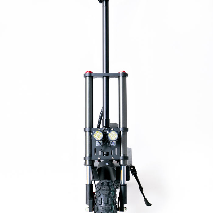 This electric scooter has 3 speed settings with a separate button that you can switch from rear wheel drive to front and rear, which gives it amazing grip and climbing capability.